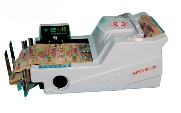 Máy đếm tiền Xinda Super BC 28F có thể đếm các loại tiền polymer và cotton , máy băng tải dài.